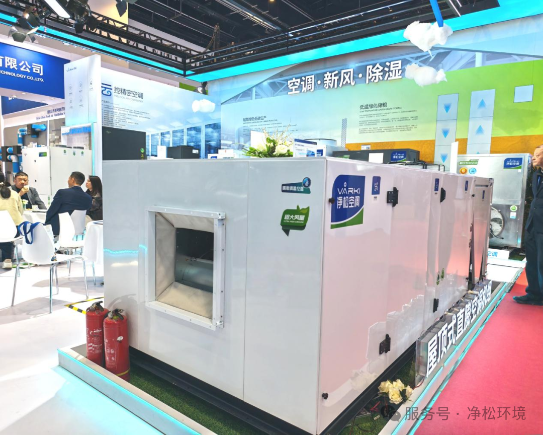 围绕国家粮食安全战略,净松环境在本次制冷展上重磅推出变频四合一粮仓空调,该产品突破传统粮仓空调功能局限,将粮面控温、谷物冷却、机械通风、内环流技术融为一体,实现粮食仓储的精准化、集成化智能控制。