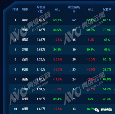 精装修市场中新风系统配套城市接近90个,大都分布高等级城市(新一线、二线城市)。据奥维云网(AVC)地产罗盘3.0数据显示,截至2021年8月底,新一线城市配套规模23.9万套,其次是二线城市配套规模16.9万套。累计份额达76.5%,同比增长6.0%。TOP5城市中,新风配套规模累计达16.3万套, 其中南京以5.6万套规模位居第一,同比增速全国第一;其次是无锡、成都、苏州、西安等城市新风配套规模在2万套以上,均领先于其他城市。从配套率来看,TOP10城市新风的配套率接近60%。其中配置率超过60%的城市有4个,多集中在华东区域。分别是南京(87.1%)、无锡(72.9%)、成都(66%)、苏州(68%)。